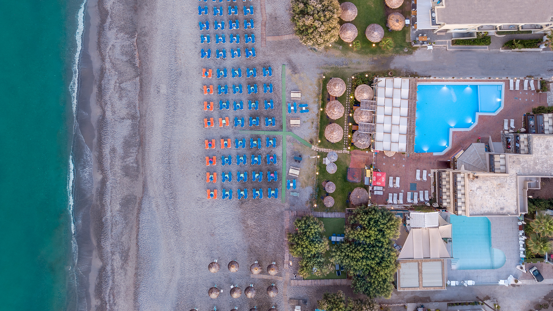 A large set of 64 rooms that were shaped and influenced by your dream vacation offers a marvelous view to the sea and to the mountains, while at the same time they provide privacy and quietness to enhance a romantic getaway or simply a relaxing holiday.